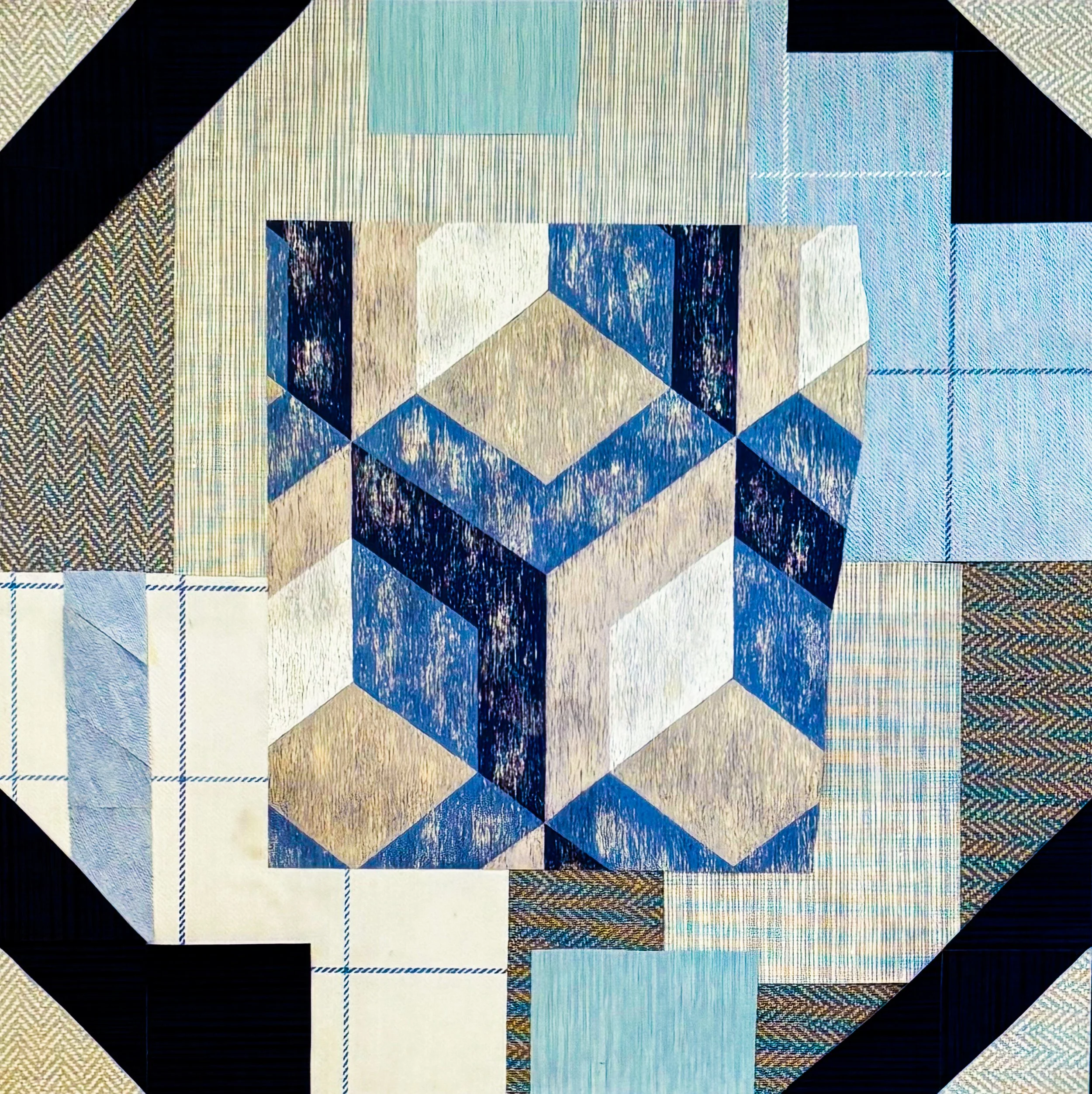 She encourages attendees to look in their environment for things they would like to incorporate in their collages, including, maps, newspapers, photos, magazines tear sheets, music sheets, fabric swatches, paint swatches, hard copies of their artwork, tissue paper, wrapping paper, labels from food (cans, boxes, old mail -anything paper, jewelry, and sewing related materials. She encourages people to look in their own home before going out and buying any art materials for projects. This is especially true for collage projects.