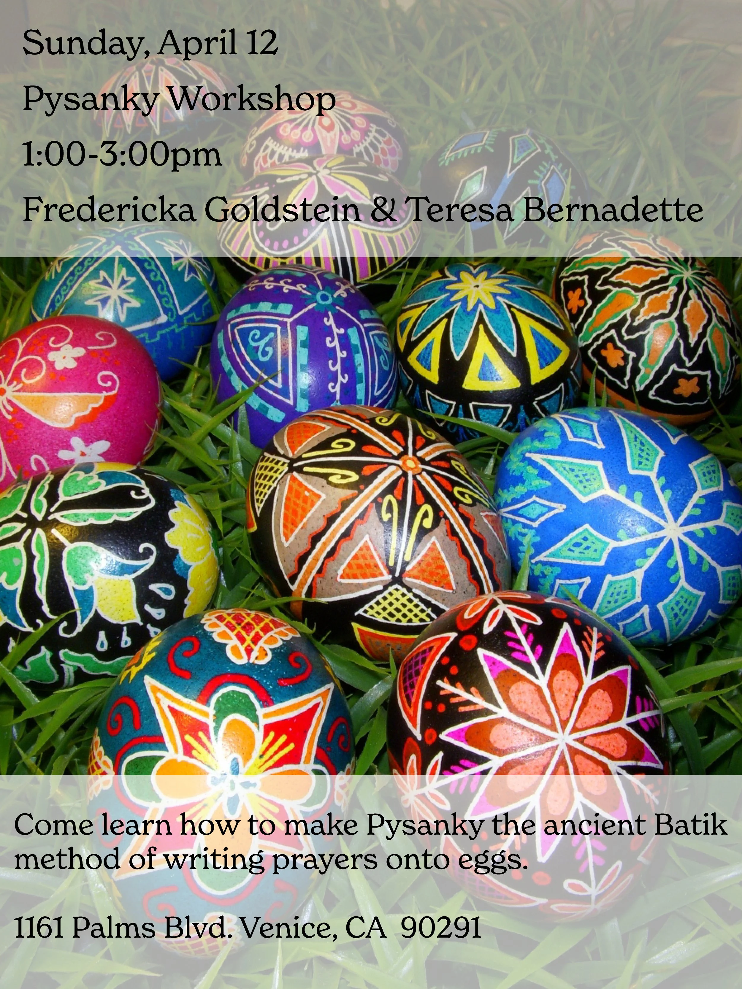 Come learn how to make Pysanky – the ancient Batik method of writing prayers onto eggs.